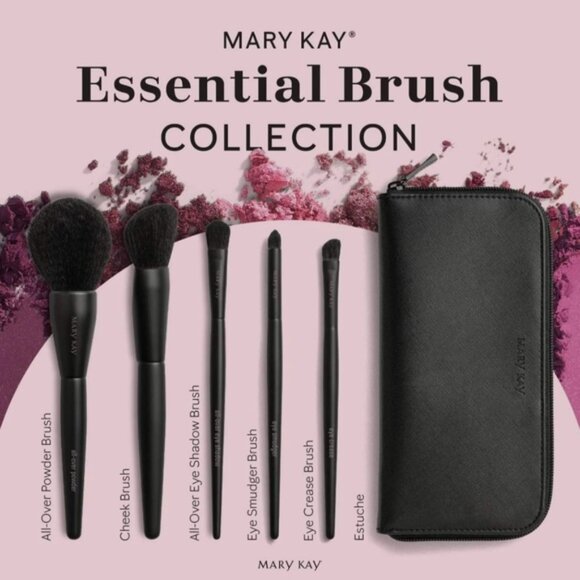 Sleek black wallet with zipper closure. Includes Five brushes: Powder Brush, Cheek Brush, All Over Eye Shadow Brush, Eye Crease Brush, Eye Smudger Brush. All brand new in their original packaging.