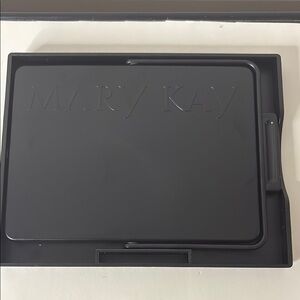 Sleek black tabletop vanity mirror. Perfect for makeup and grooming.
