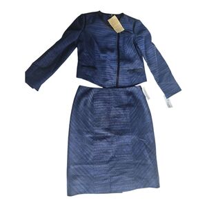 Mary Kay Cobalt/Black Pencil Skirt & Asymmetric Zip Jacket Set Size 10 NWT