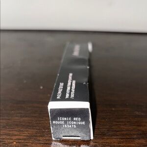 Bold red lipstick by Mary Kay. Encased in sleek black packaging. Ideal for a striking look.
