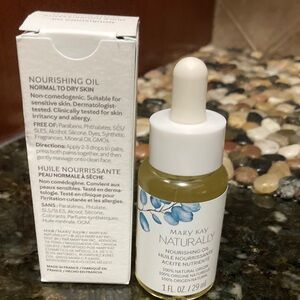 🆕 Revitalize your skin with Mary Kay Naturally Nourishing Oil. Non-comedogenic! Suitable for sensitive skin! Dermatologist tested! Clinically tested for skin, irritancy, and allergy! Free of Payne‘s, fasciate, SLS/SLES, alcohol, silicone, dies, synthetic fragrances, mineral oil, and GMO‘s! Apply 2 to 3 drops to Palm, press both palms together, and then gently massage onto to clean face! Infused with natural ingredients for a radiant glow! NWT! HTF! 💥
