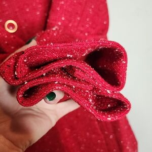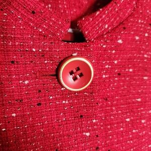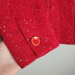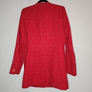 Mary Kay Red Tweed Button Jacket Long Blazer Mock Neck Size Medium Tall