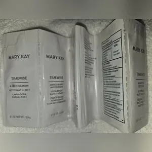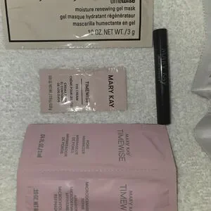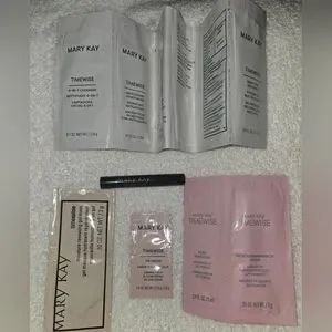 New condition try these samples products before you buy it These are Mary Kay TimeWise skincare samples packets, including a 4-in-1 cleanser, antioxidant moisturizer, night treatment, moisture renewing gel mask, eye cream, pore minimizer, and microdermabrasion refine smaple mini mascara .see pictures for details.sorry no free shipping obo is considered