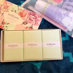 Into the garden by mary Kay bundle deal! This includes 3 soaps, that smell amazing, and the into the garden pedicure set, which includes foot scrub, file,10 foot fizzies, and toe separater, and makeup bag it all goes in. All brand new and in sealed packages. The pedicure kit is originally $28.00 & the soap is $15 on the Mary Kay website.
