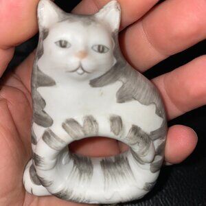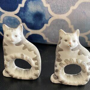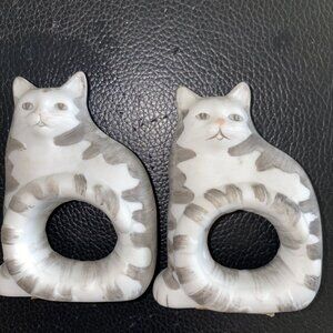 Lot of 2 Mary Lake-Thompson for Silvestri Ceramic Grey & White Cat Napkin Rings