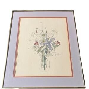 Mary Lou Goertzen Wildflower Bouquet Art Print Framed Vintage Floral Cottage