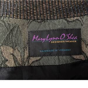 Elevate your wardrobe with this exquisite tapestry jacket handmade in Vermont by Mary Lynn O'Shea Designer/Weaver perfect for making a statement this season. Embrace timeless elegance and intricate detailing—your new go-to piece for a sophisticated look.