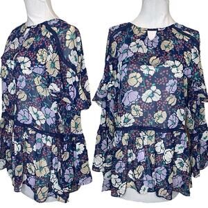 Mary & Mabel Floral Tunic Blouse Womens S Oversized Boho Chic Flowy Sheer Ruffle