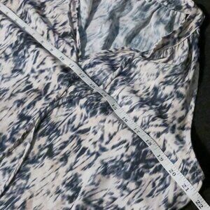 This Mary & Mabel size M high-low shift dress in grey, pink, and white features a V-neck with Tie. This stylish sleeveless dress boasts a unique high-low hemline and comfortable fit.