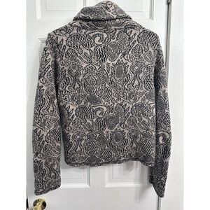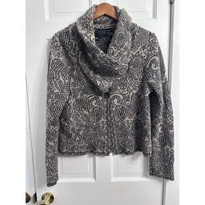 Mary Made in Italy Elegant Paisley Zip-Up Jacket Cowl Neck Textured Knit