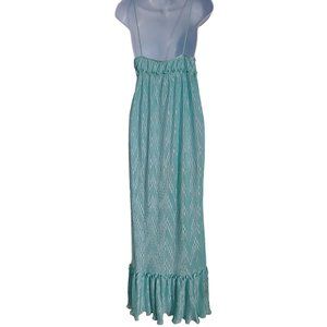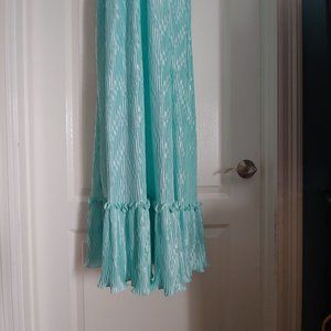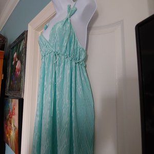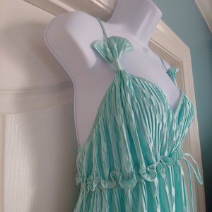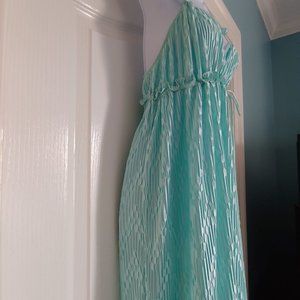 Look like a Grecian Goddess. Fabric stretches. Luminescent appearance. Spaghetti straps. Drawstring waist. Pit to pit 17". Length 59".