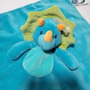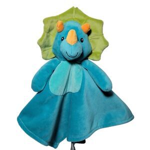 Mary Meyer Dinosaur Lovey Security Blanket Satin Back 12x12 Triceratops Blue NEW