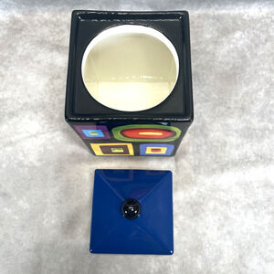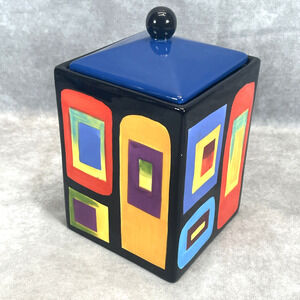 Mary Naylor Designs Modern Ceramic Canister Blue Lid Hand Painted Abstract 6x4.5
