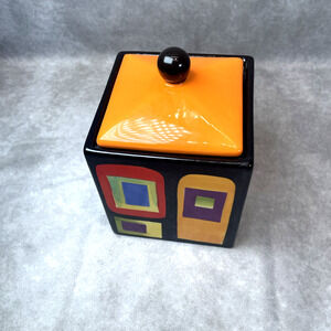 Mary Naylor Designs Modern Ceramic Canister Orange Lid Hand Painted Abstract 5x4