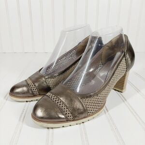 preowned silver/metallic cut out detail round toe