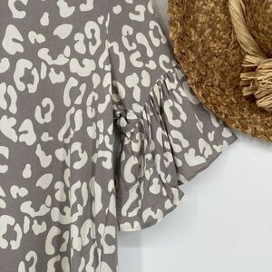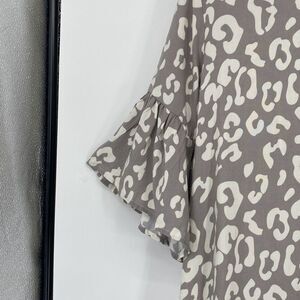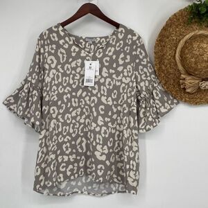 Mary Square Wildly Wonderful Flutter Sleeve Grey Shea Split-Neck Top Blouse L