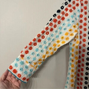 Mary V's Women's 3/4 Sleeve Multicolored Embroidered Floral Button Up GUC