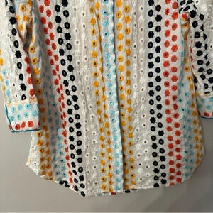 Mary V's Women's 3/4 Sleeve Multicolored Embroidered Floral Button Up Top GUC