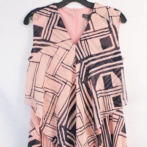 MaryLing V-Neck Sleeveless Georgette Print Dress in Light Pink -