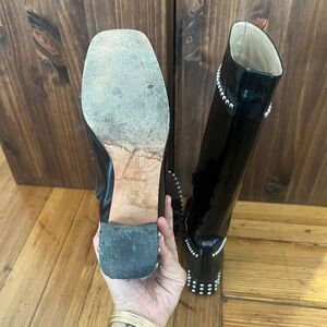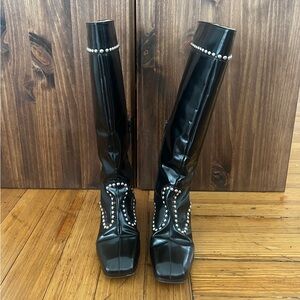 theee iconique maryam nassir zadeh kiki boots. black studded leather. hot lil boots. super walkable short block heel. style no longer produced. gently worn, no noticeable flaws. size 36/6