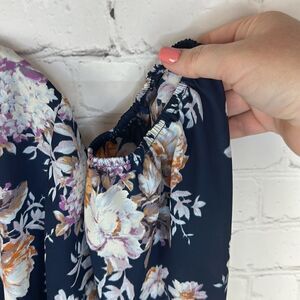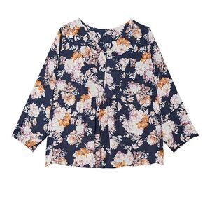 Marybelle Navy Long Sleeve Floral Print Blouse Size 2X