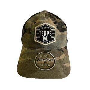 This Maryland Terps hat combines rugged camouflage with breathable mesh, offering a unique blend of style and practicality. The embroidered "Terps M" patch showcases team pride, while the adjustable snapback ensures a comfortable fit. Zephyr's craftsmanship is evident in the durable materials and meticulous design, making it a standout addition to any fan's collection.