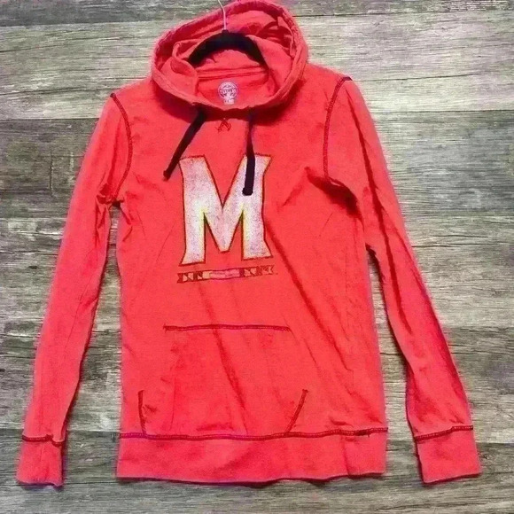 Maryland Terrapins Red Cuffed Long Sleeve Hooded Sweatshirt size Small