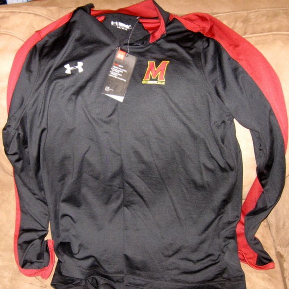 This is an outstanding item for Maryland Terrapins fans, a brand new with tags Maryland Terrapins NCAA Under Armour Terps Team Logo 1/4 Zip Jacket, size adult large and brand new with tags. An authentic Maryland Terps and Under Armour item, this Maryland Terrapins NCAA Under Armour Terps Team Logo 1/4 Zip Jacket features a pullover design, Maryland Terrapins logo embroidered on the front, Under Armour logo on the opposite shoulder and team color inserts on the sleeves and shoulders.
