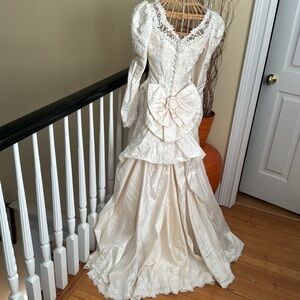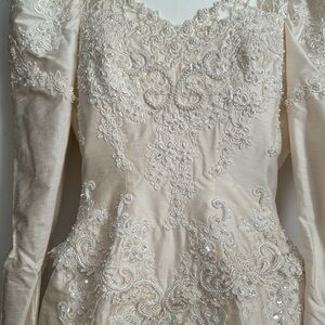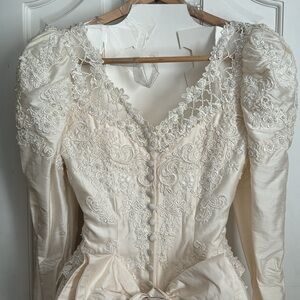 Marylise 🎈Vintage silk of white wedding dress with embroidery and pearls Belgium