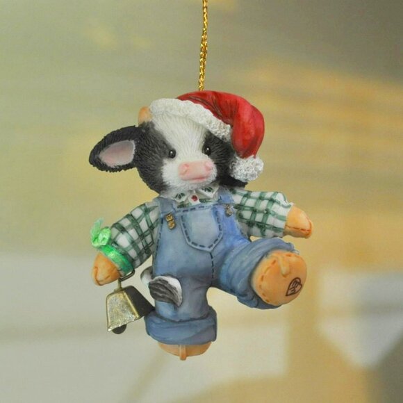 Mary’s Moo Moos Boy Cow w/ Bell Hanging Ornament Enesco Christmas 651222 vintage