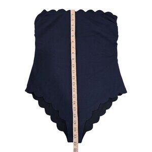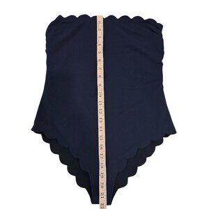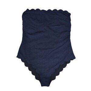 NWOT This strapless swimsuit by Marysia exemplifies elegance with its signature scallop edges and flattering one-piece design. Made with a textured fabric for comfort and style, it offers a timeless appeal for those seeking sophistication in their swimwear collection. Its minimalist design ensures it remains a versatile choice for various beach or poolside settings.