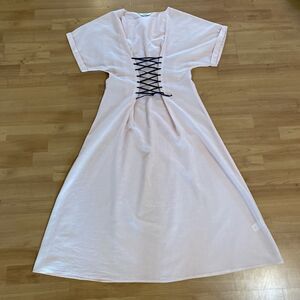 Marysia Resort Pink Micro Check Dress Lace Up Dress -Size XS