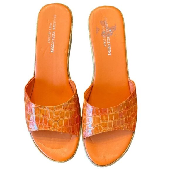 Marzia Vellutini Orange Wedge Open Toe Sandals. Size 8