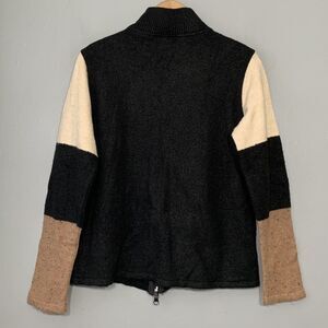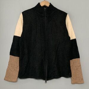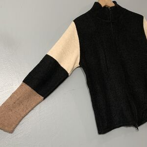 Masaccio Size Large Black Tan Colorblock Wool Blend Zip Cardigan 90s Minimalist