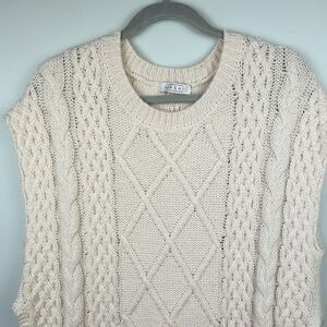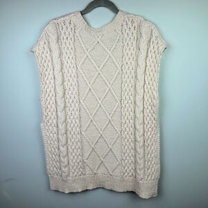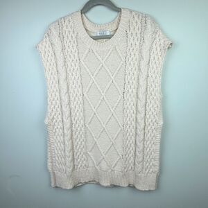 Masai Pullover Sweater Vest Sleeveless Cable Knit Fisherman Top Cream Crewneck L