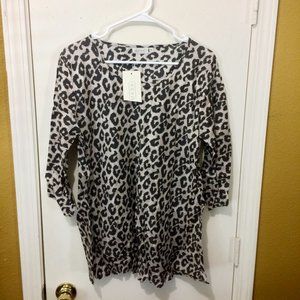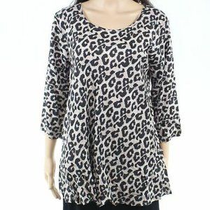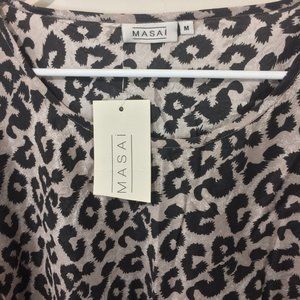 Masai women's M medium leopard print "KIWI TOP" sand brown 3/4 sleeve blouse