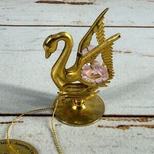 Mascot 24K Gold Plated Swan Figurine with Austrian Crystals Vintage
