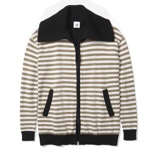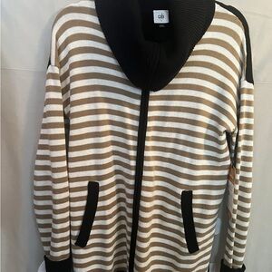 Cozy tan, white & black knit sweater with zipper, front pockets