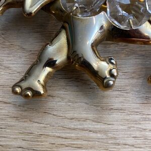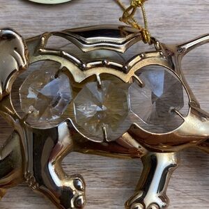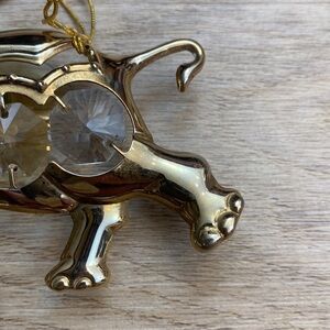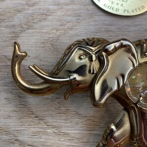 Vintage 1997 gold plated elephant and Austrian Crystal suction cup suncatcher. Trunk up for good luck!