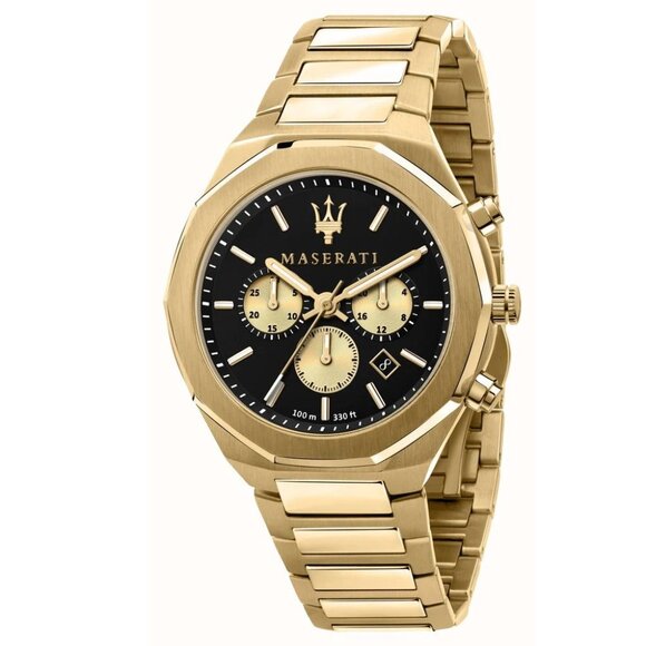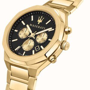 Maserati Stile Chronograph Yellow Gold Plated Watch, Original box