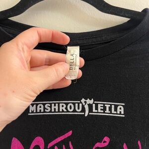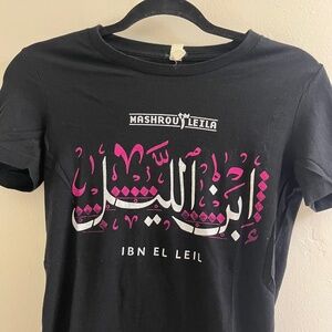 Mashrou3 Leila or Mashrou' Leila (Leila's Project) was an indie Lebanese band that is no longer together; this shirt is from their tour after releasing Ibn El Leil (circa 2016).