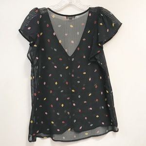 Masion Jules • Women’s Sheer V-Neck Leaf Top Size Medium.