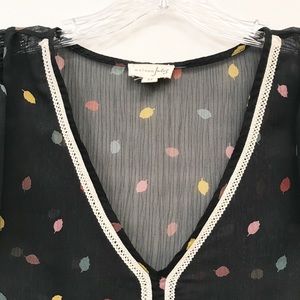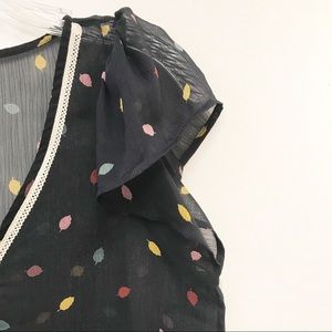 Masion Jules • Women’s Sheer V-Neck Leaf Top Sz M