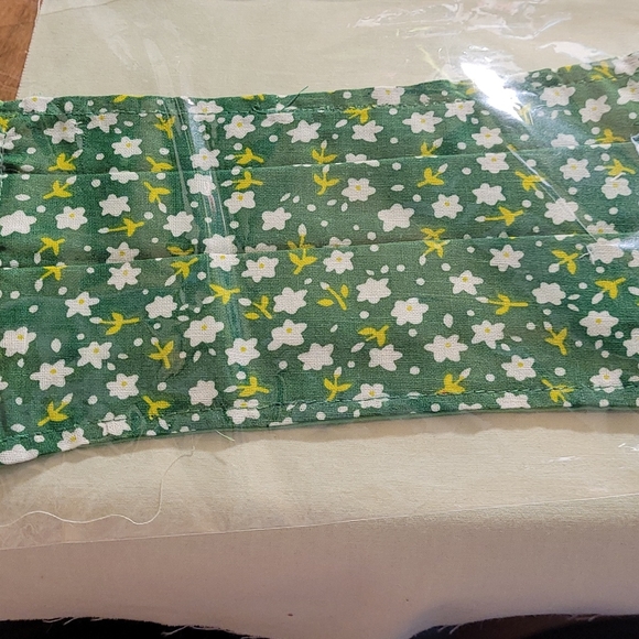 100% cotton. Ironed and packaged right away. Gloves and masks are worn while making the masks.