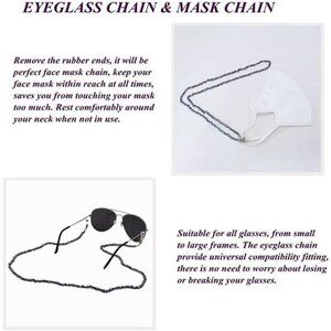 *MULTI-APPLICATION: Works great with any size glasses thin or thick as optical frames, prescription glasses, sunglasses, reading glasses and safety glasses. Not only can they be an eyeglass chain, but also a fashion decorative necklace and bracelet. Remove silica gel ends, it is stylish necklace and bracelet.