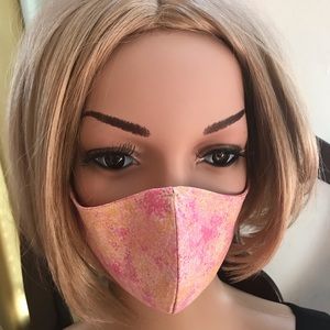 Pink - 100% cotton double sided with a filter (a non-woven breathable fabric) between the two sides.