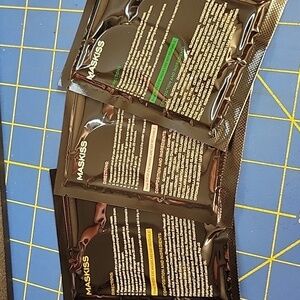 Set of three Maskiss eye masks. Includes Aloe Vera, Caffeine, and 24K Gold variants. Perfect for soothing and cooling.