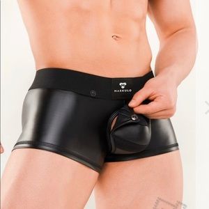 Maskulo Armored Trunks Shorts. Black. With removal front code piece n with rear back zipper. Size XL. TR1200-90-XL. Fit waist size 36-38 inches