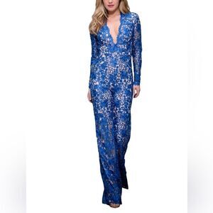 Maslavi by Jovani Blue Lace Jumpsuit Size 2