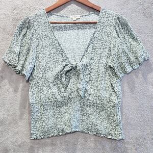 Mason & Belle Green Ditsy Floral Smocked Cropped Tank Top Size Medium Festival